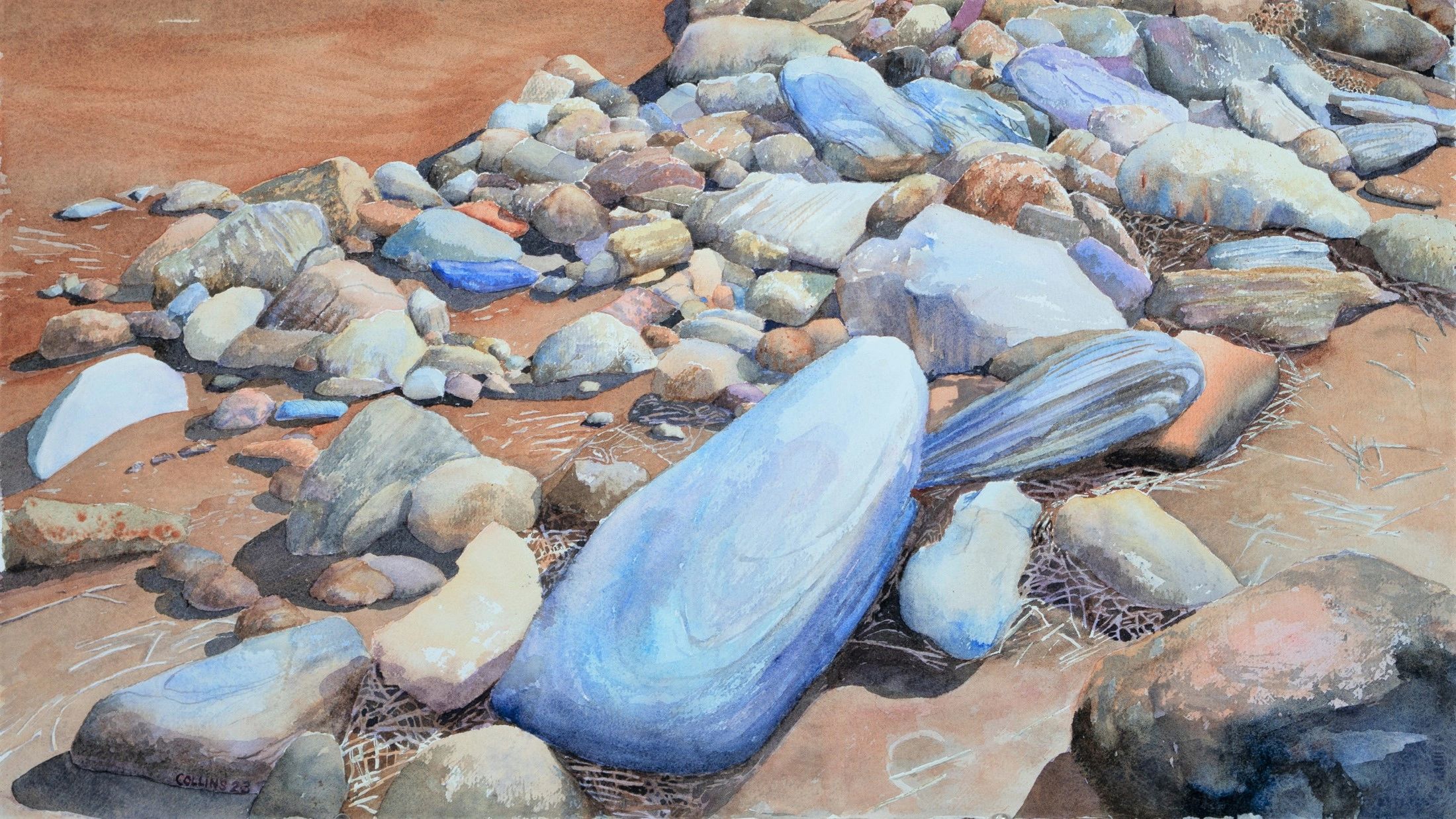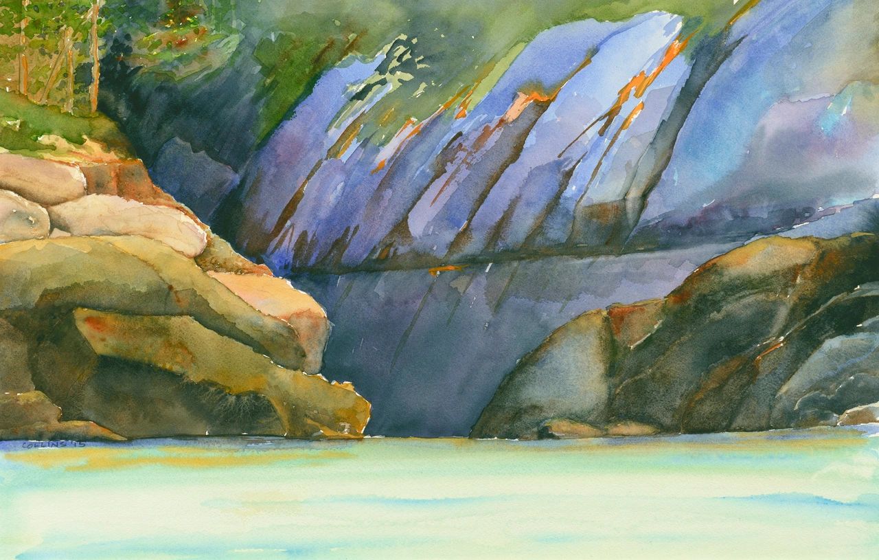 My watercolors are characteristically different than either my oils or pastels. They tend to be more finely detailed with deep rich color. Nothing "washy" about these paintings. This painting, Colored Water, is in a private collection.