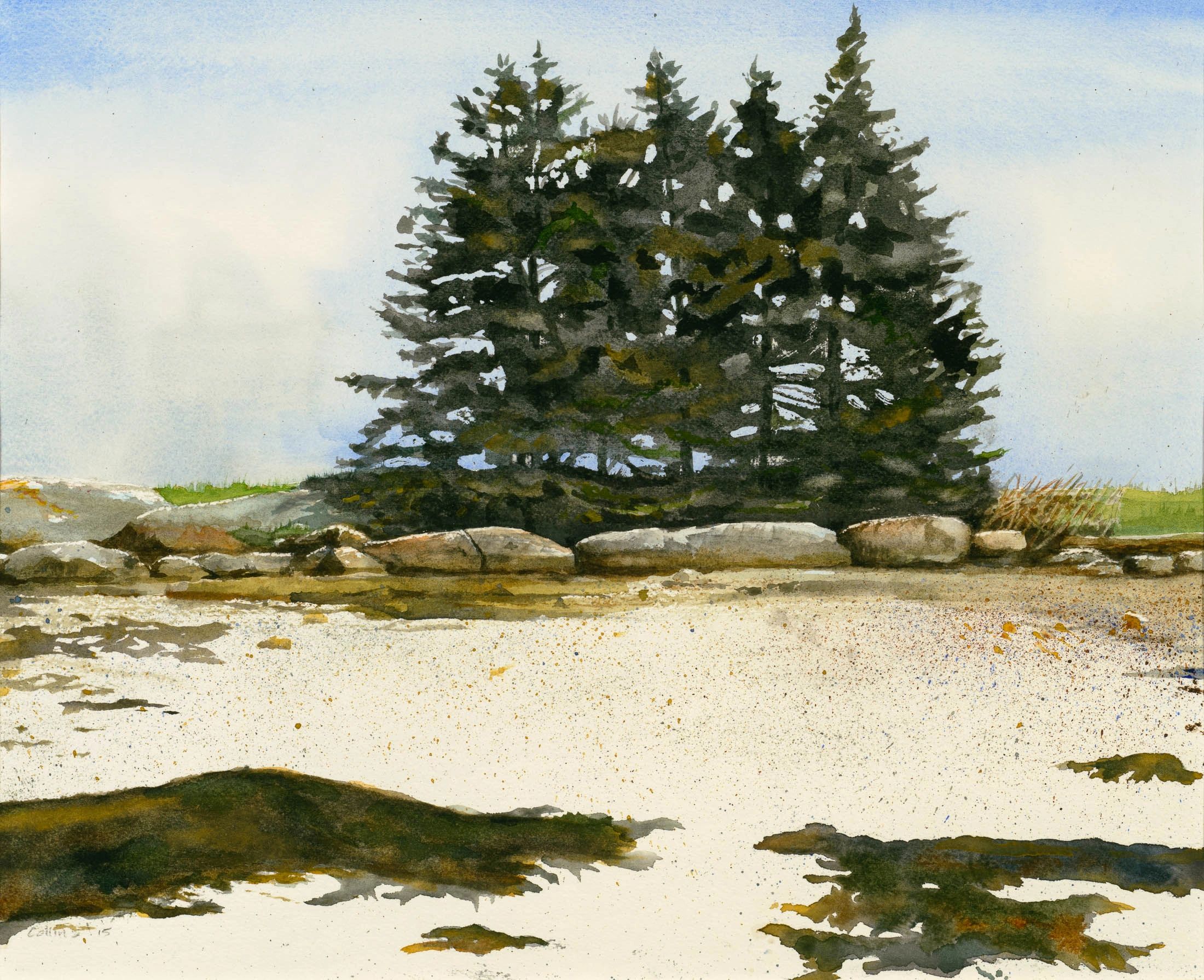 Spruce and Beach, Little Cranberry Island, Maine 13 3/4" x 16 1/2"